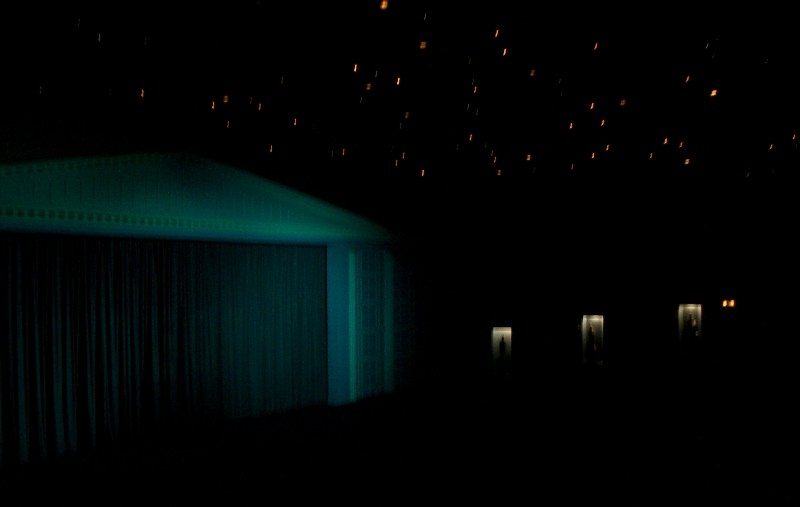 Screen 1 (original balcony) with reproduction of original proscenium, stars lit in ceiling and flood-lit statues in alcoves.
